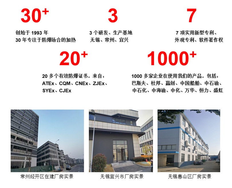 永安組團企業:常州永熱電氣有限公司——————負責工業用新產品的生產及組團所有產品的銷售。永安熱控科技(無錫)有限公司———負責工業用新產品的研發。無錫市永安電熱器材有限公司———負責工業用老產品的生產。無錫浪速科技有限公司——————負責民用石墨烯產品的研發和生產。