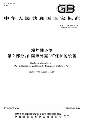 GB 3836.2-2010 爆炸性環境 第2部分:由隔爆外殼“d” 保護的設備