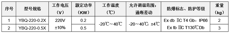 *注:工作溫度的最高值為參考值,實(shí)際箱內(nèi)能達(dá)到的最高溫度取決于加熱功率的大小和被加熱箱體的散熱情況,用戶可根據(jù)箱體實(shí)際散熱情況、需要的工藝溫度、防爆溫度組別,來計(jì)算和選擇適合的型號。