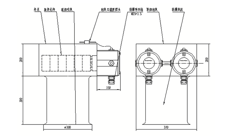對流式防爆電加熱器+防爆風機組合