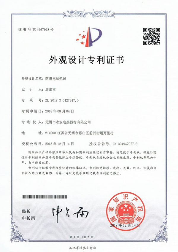 外觀設(shè)計(jì)專利證書-防爆…