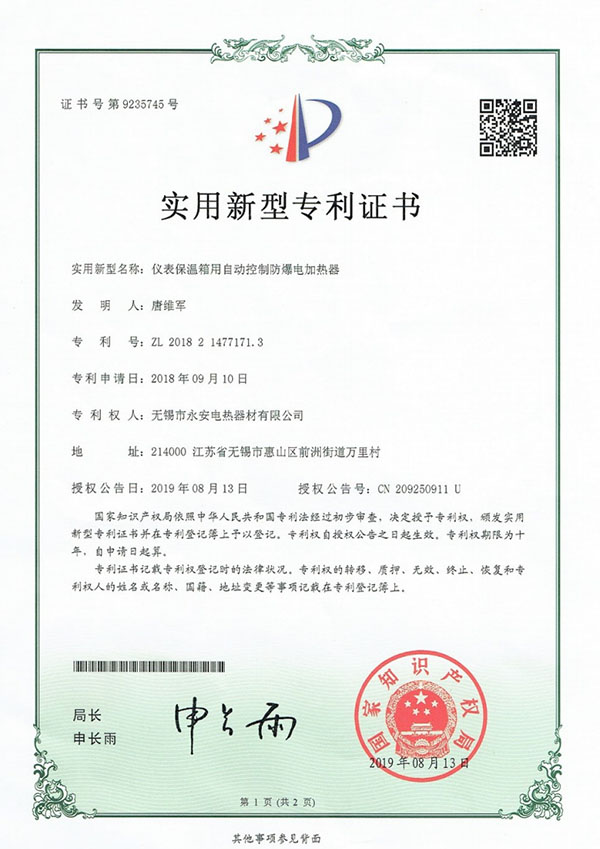 實(shí)用新型證書-電加熱式…